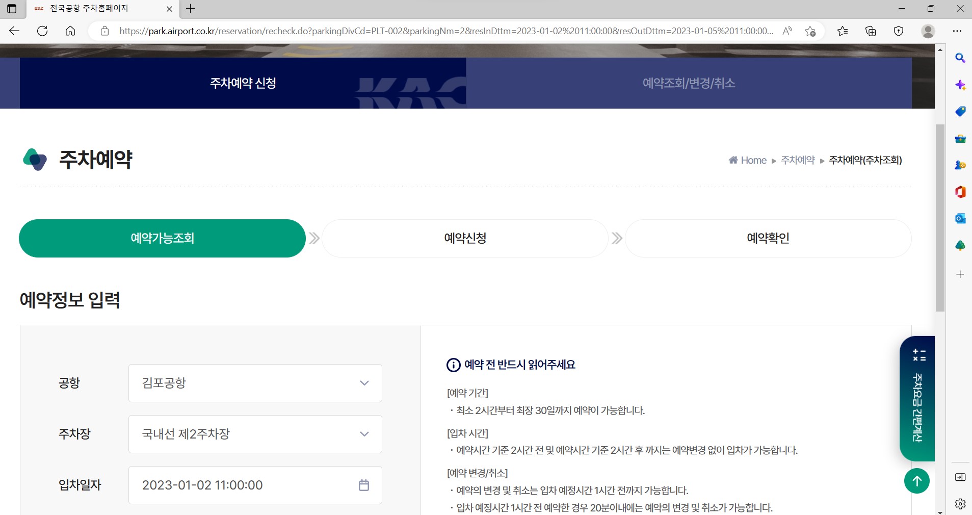 한국공항공사 주차 예약 사이트로 이동하기 click !!