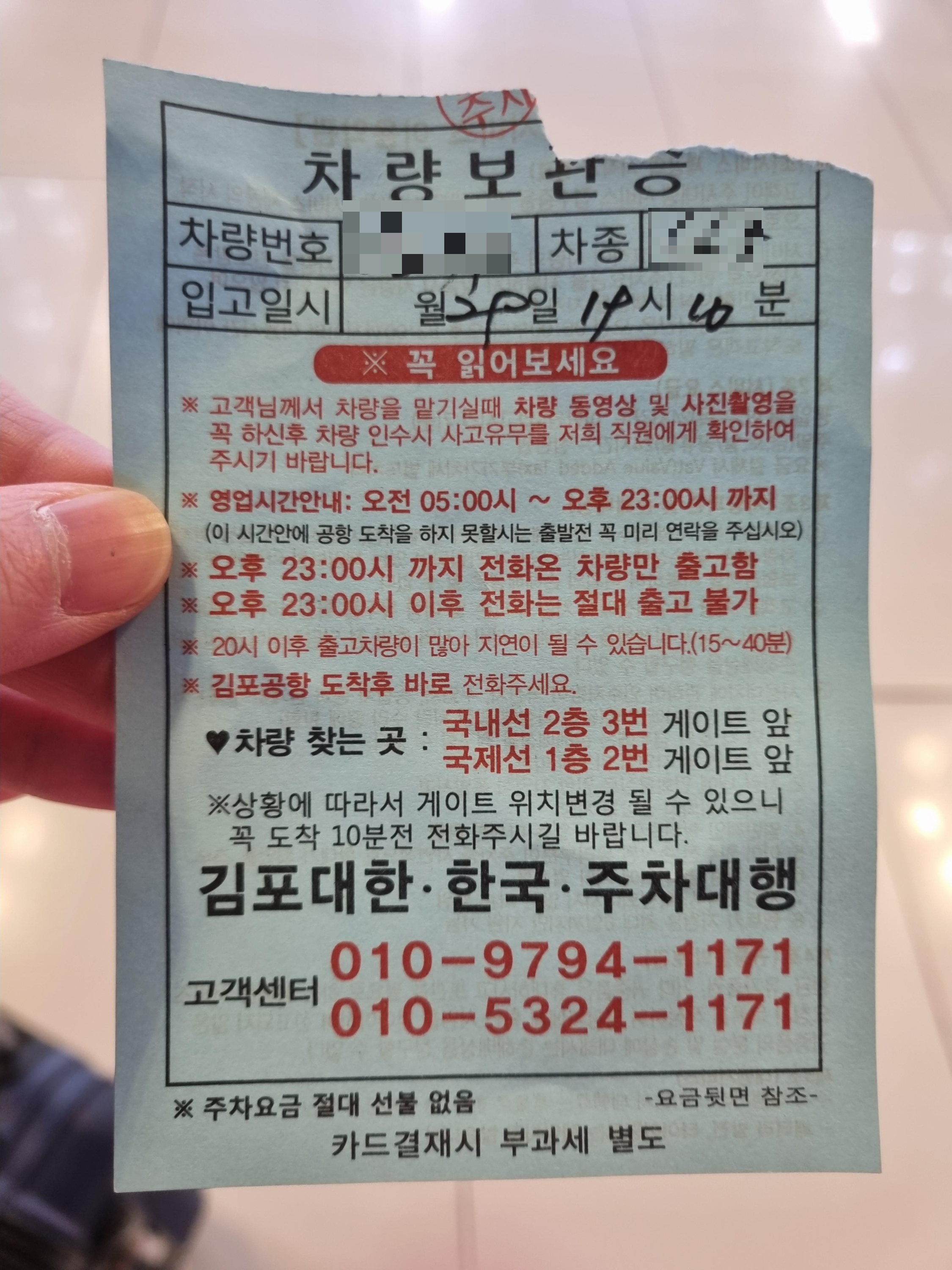 차량보관증을 받고 차량을 인계해주는데에 3분도 채 걸리지 않았던 거 같습니다. (간편해!)