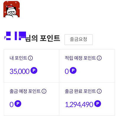 현재까지 출금 완료한 포인트는 1,294,490원 이네요.