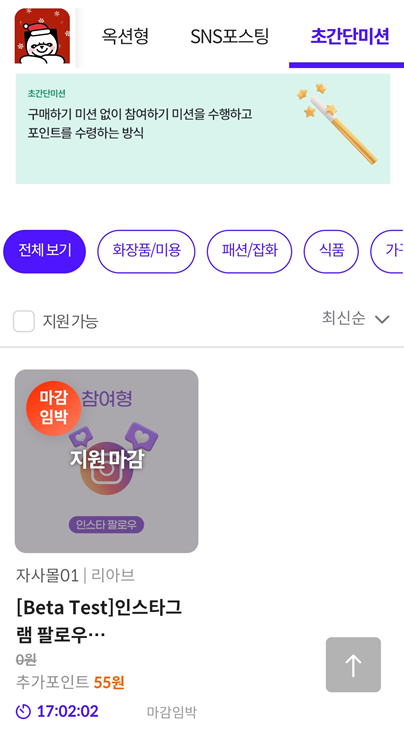 초간단 미션, SNS 포스팅형 미션도 있습니다.