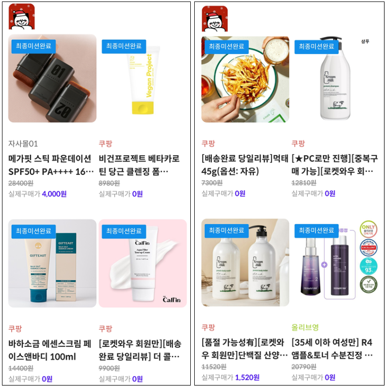 체험한 제품은 화장품, 음식, 옷, 생활용품(칫솔, 치약, 마스크, 섬유유연제, 보조배터리), 여성용품, 건강기능식품 등등 다양합니다.
