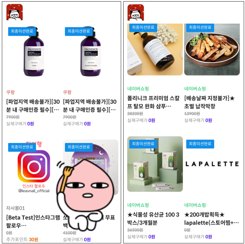 정해진 시간 내에 구매하기 인증을 마친 후 미션을 진행합니다.
