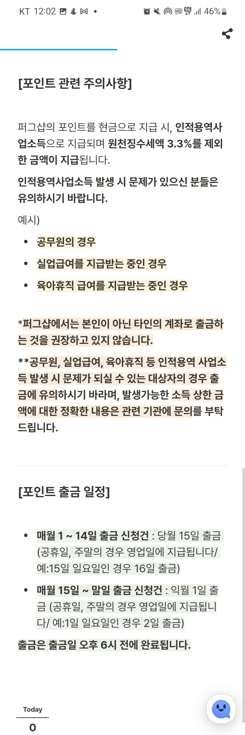 포인트는 지급된 후 3일이 지나야 출금이 가능한 포인트가 되어,