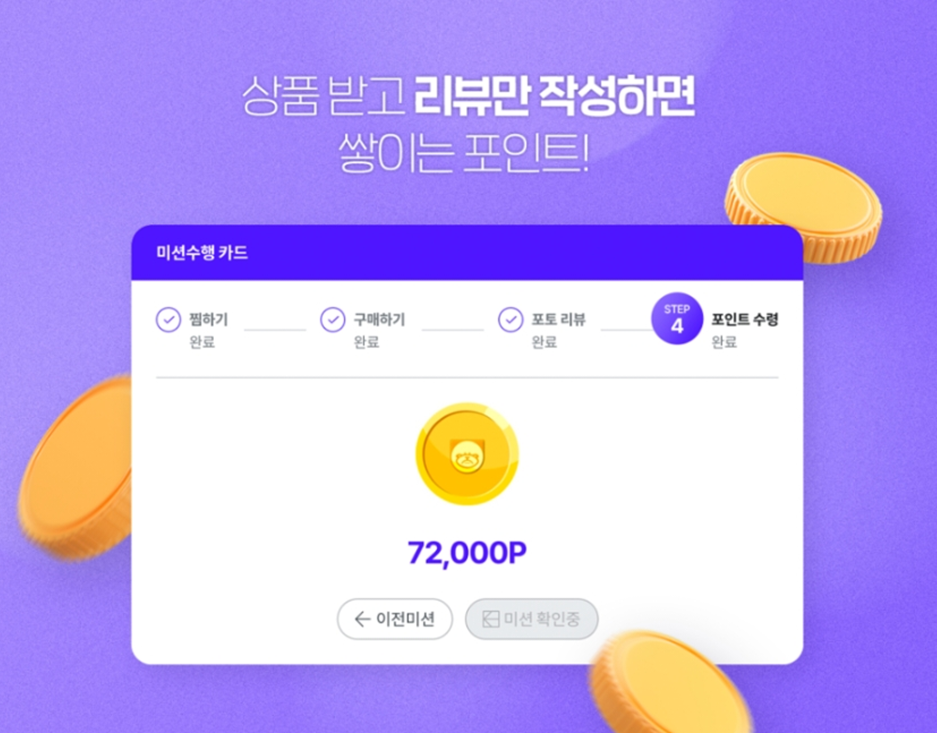 미션을 완료하면 포인트를 수령합니다.