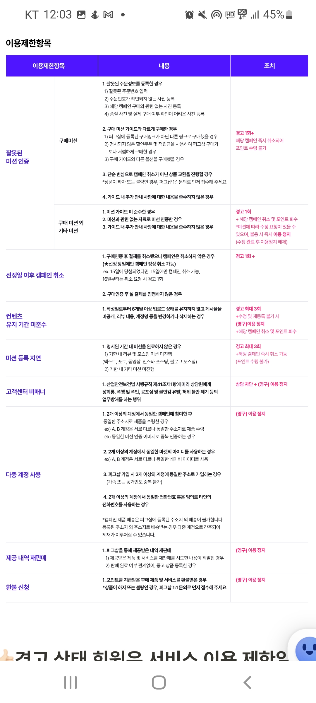 잘 읽어보신 후, 이용 제한을 당하는 일은 없도록 해야겠습니다 :)