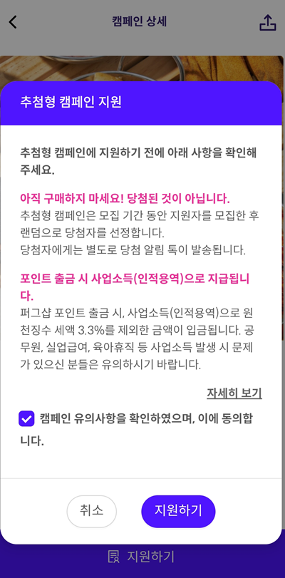 지원과 동시에 추첨이 진행되어 바로 당첨 여부를 알 수 있습니다.