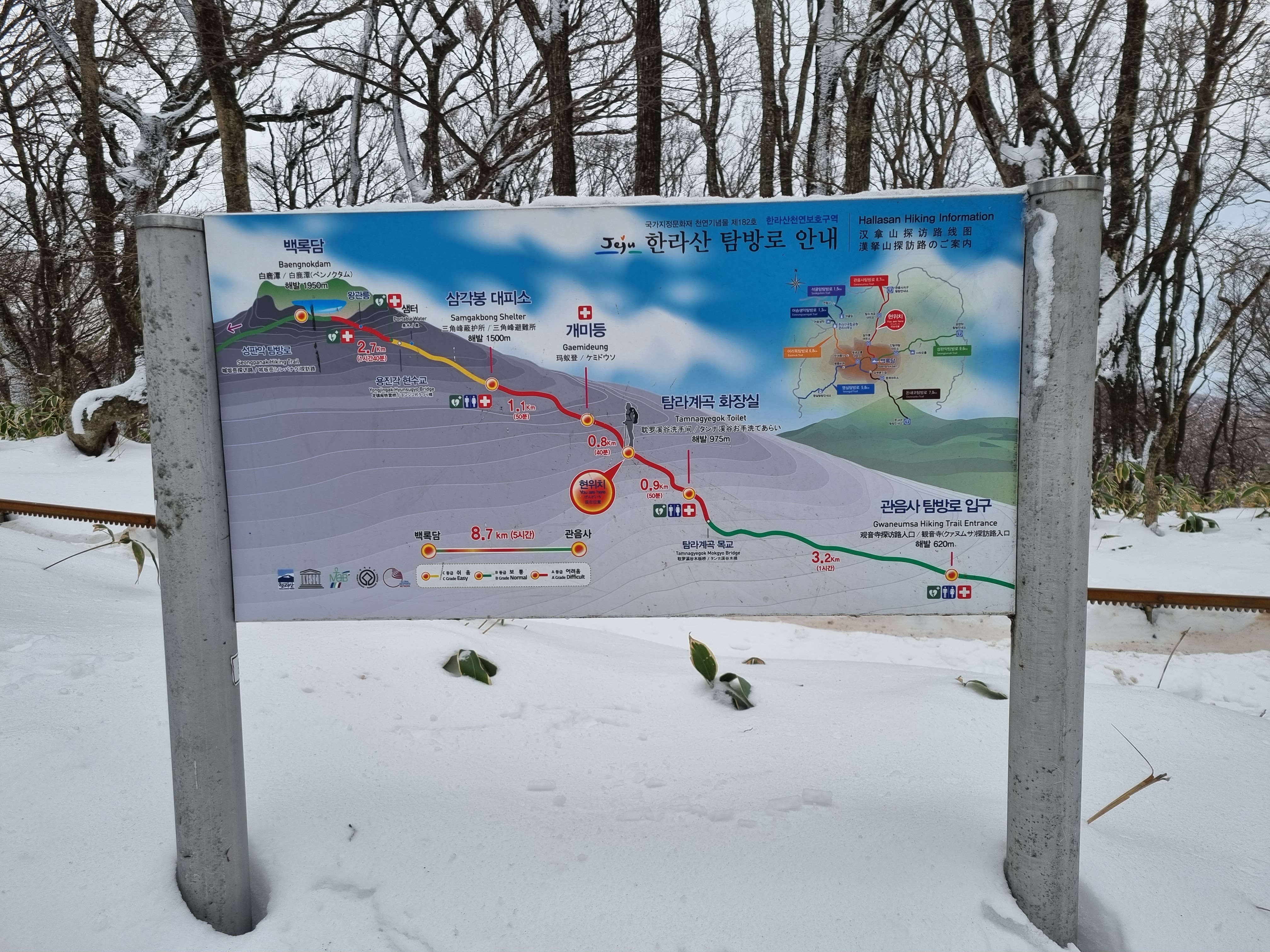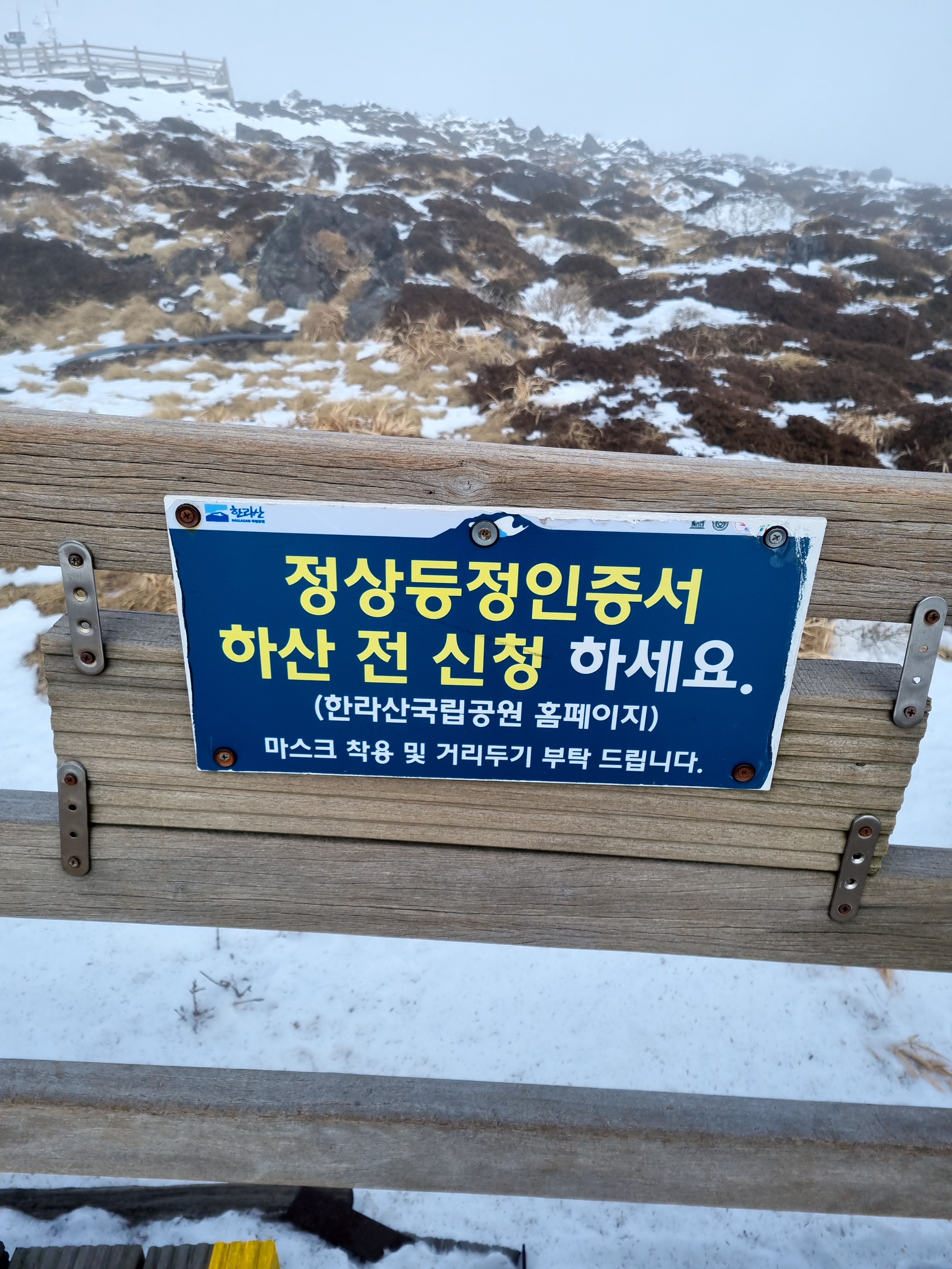 한라산 탐방로 안내표지판에도 눈이 쌓였습니다 :)