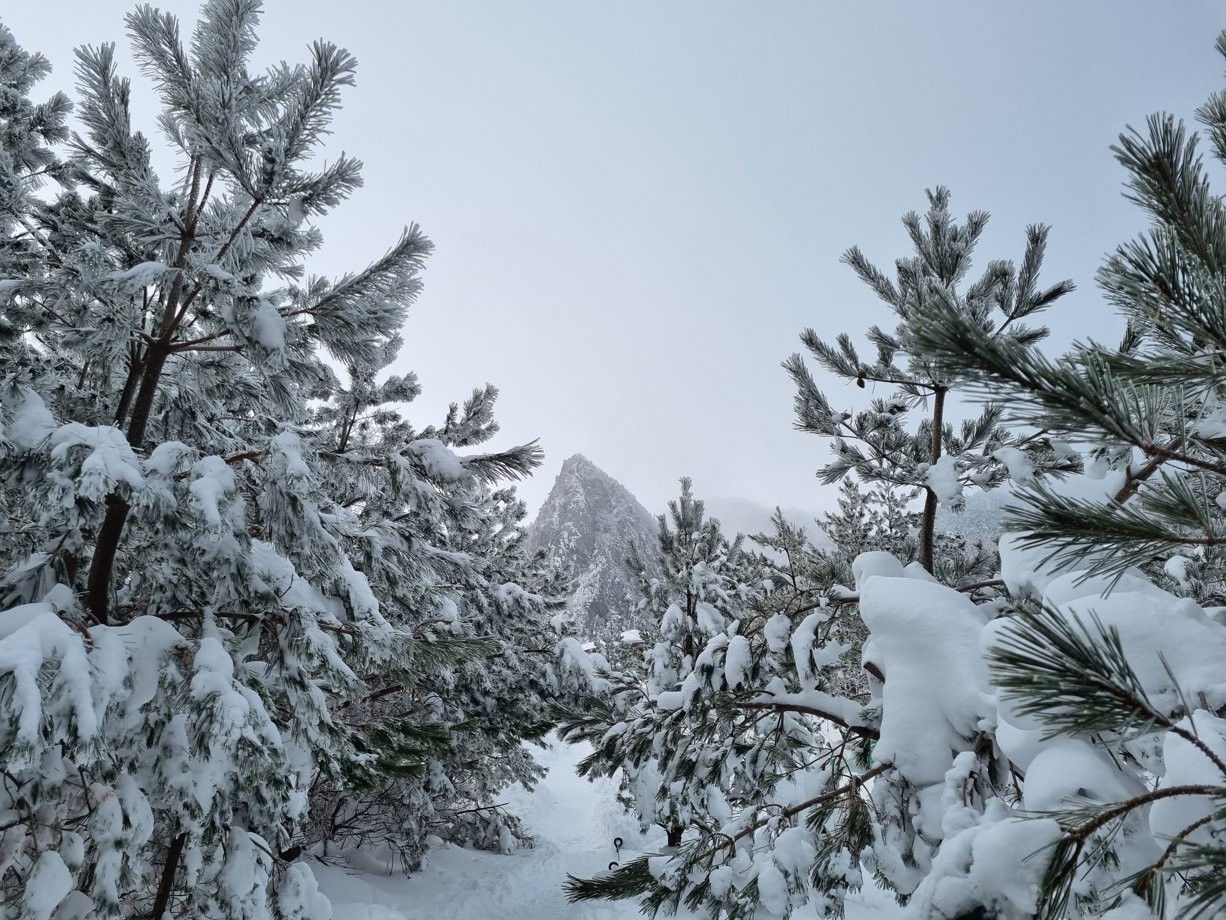 나무에 쌓인 눈의 형상이 신기하고 예뻤어요.