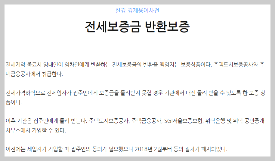 임차인을 구할 때 '전세보증금 반환보증보험' 가입을 권하곤 합니다.