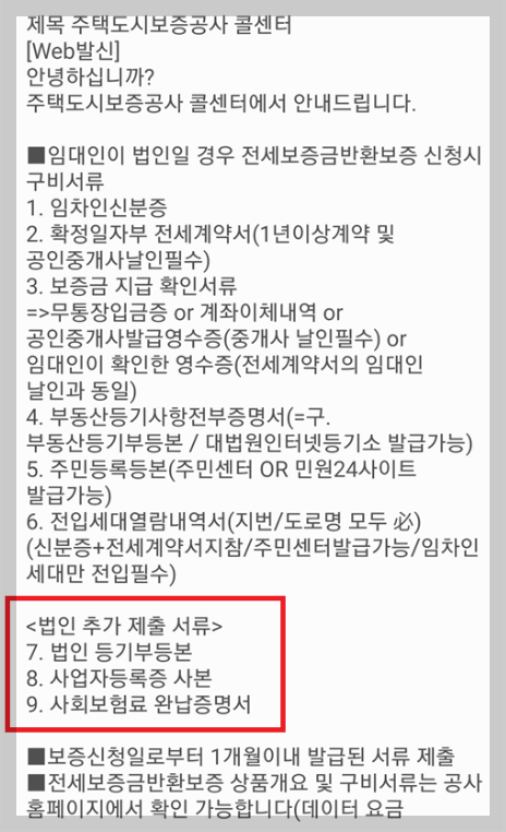 법인 임대인이 추가로 제출해야하는 서류를 위와같이 안내받았습니다.
