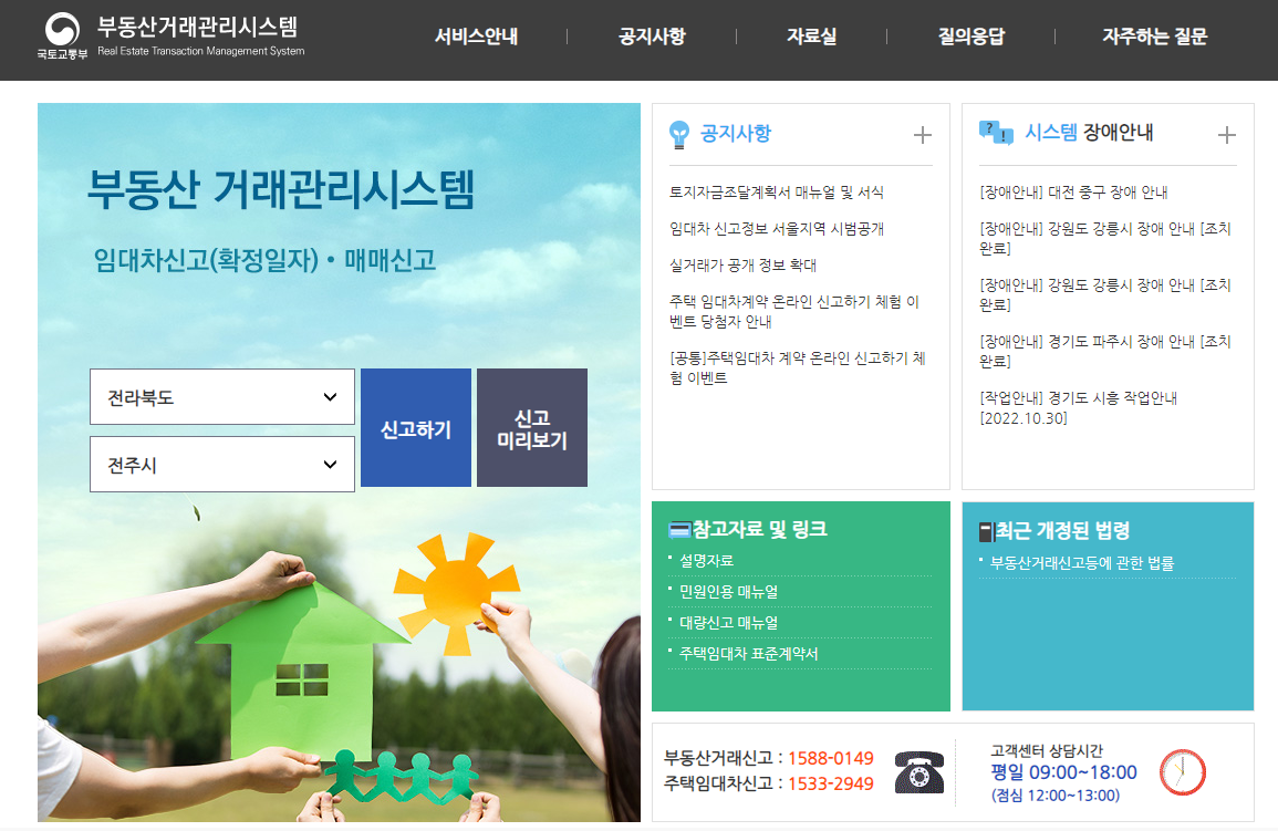 부동산거래신고 : 1588-0149 주택임대차신고 : 1533-2949