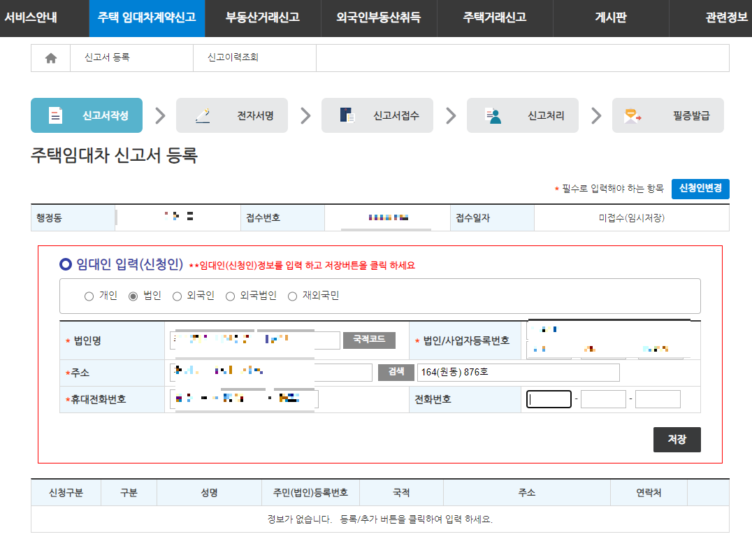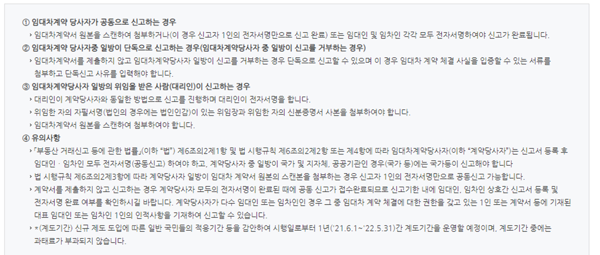 법적 효력을 가진자(임대인, 임차인 또는 대리인)만이 주택 임대차 계약신고서 등록이 가능합니다.