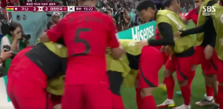 하지만 가나의 쿠두스 선수가 크로스를 골로 만들었고, 대한민국 가나는 2:3이 되었습니다.