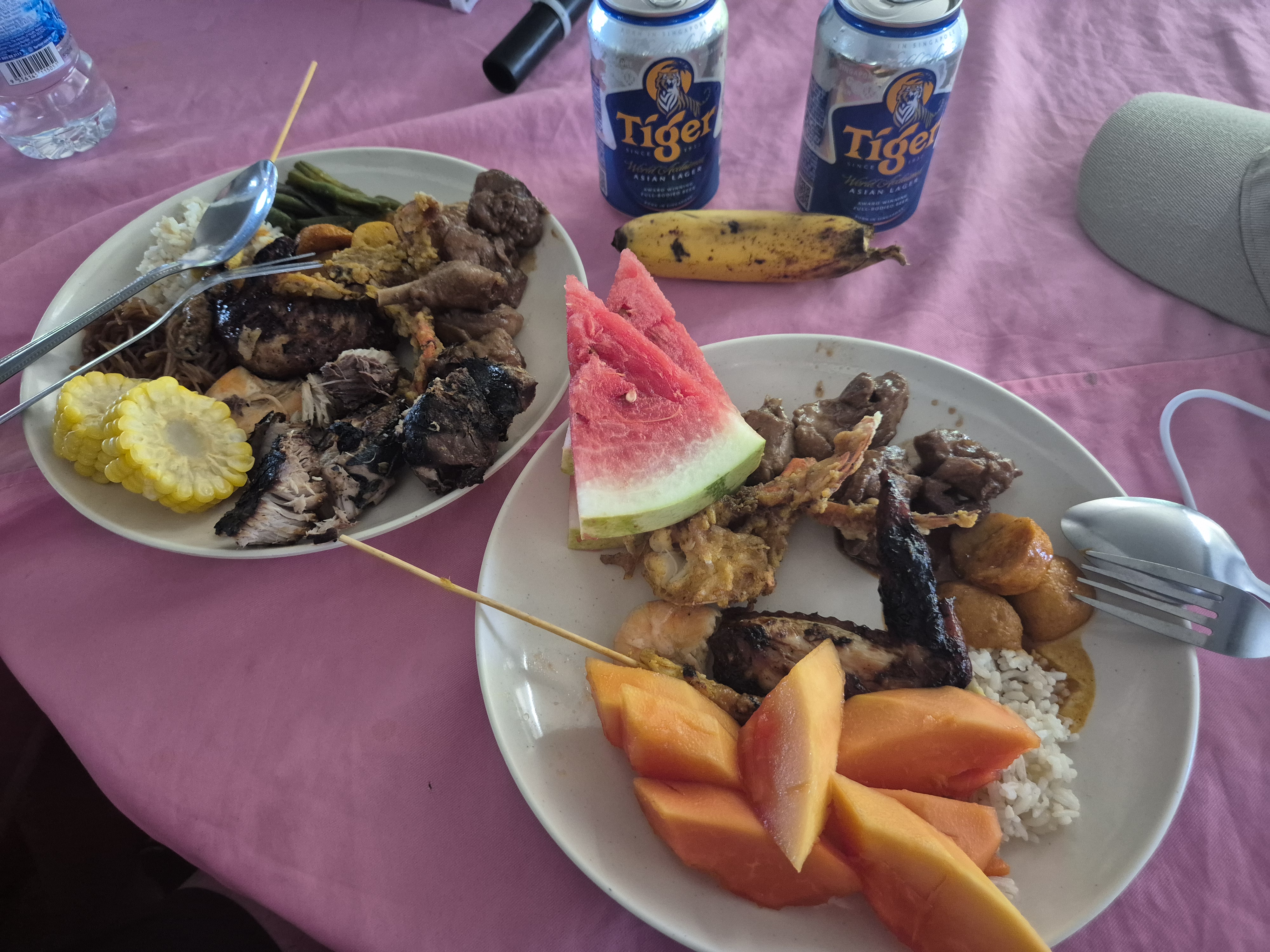 투어상품에 점심식사도 포함이어서 현지식 바베큐와 찜닭, 과일 등을 즐길 수 있었어요.