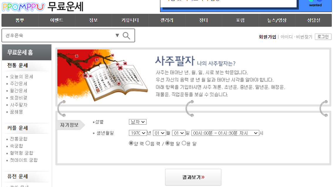 뽐뿌라는 곳에서도 무료로 신년운세 서비스를 제공한다고 합니다.